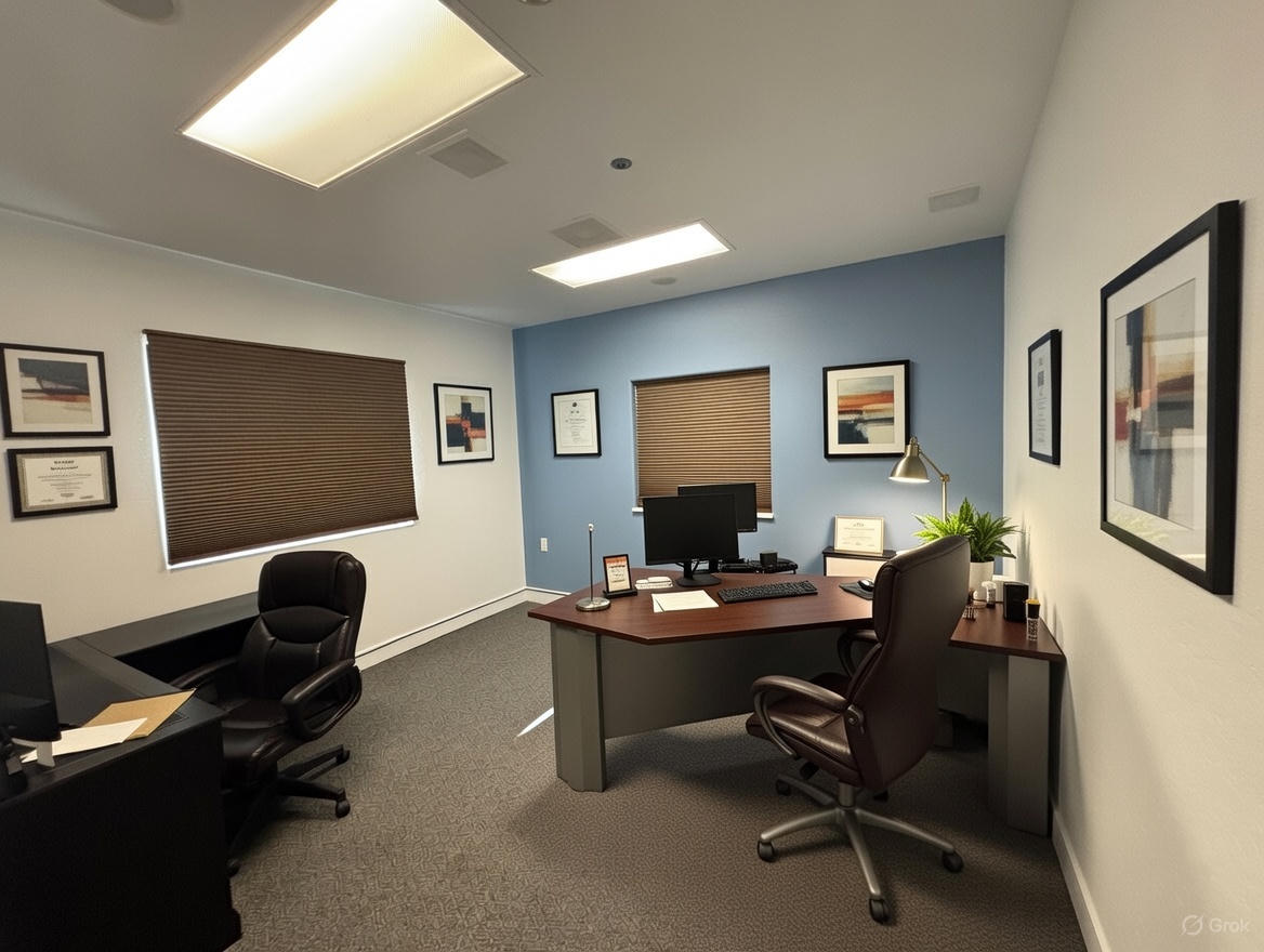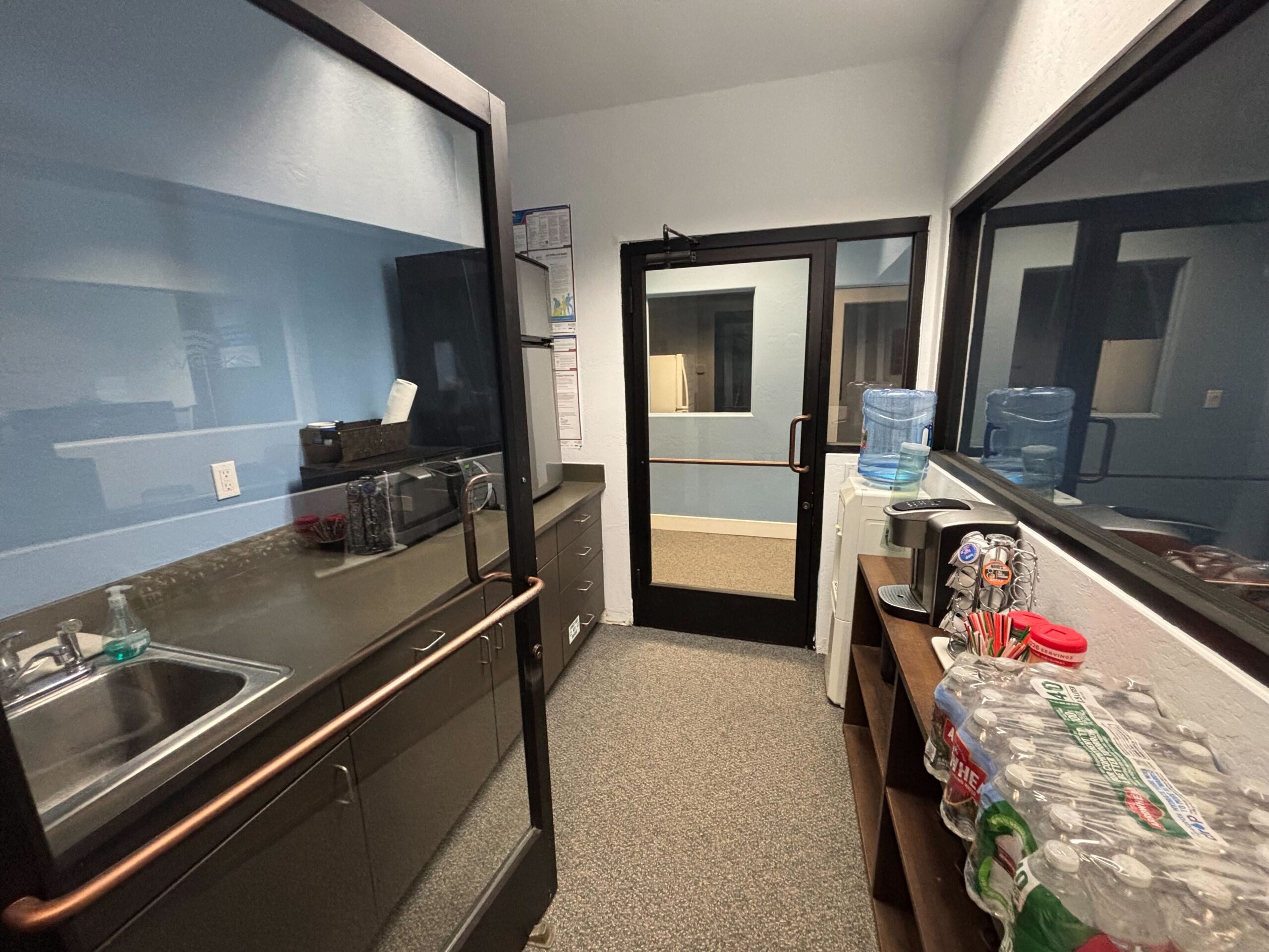 150 sq ft spacious private lockable office2 exterior windows for abundant natural lightGlass entry door for a modern, professional appearance